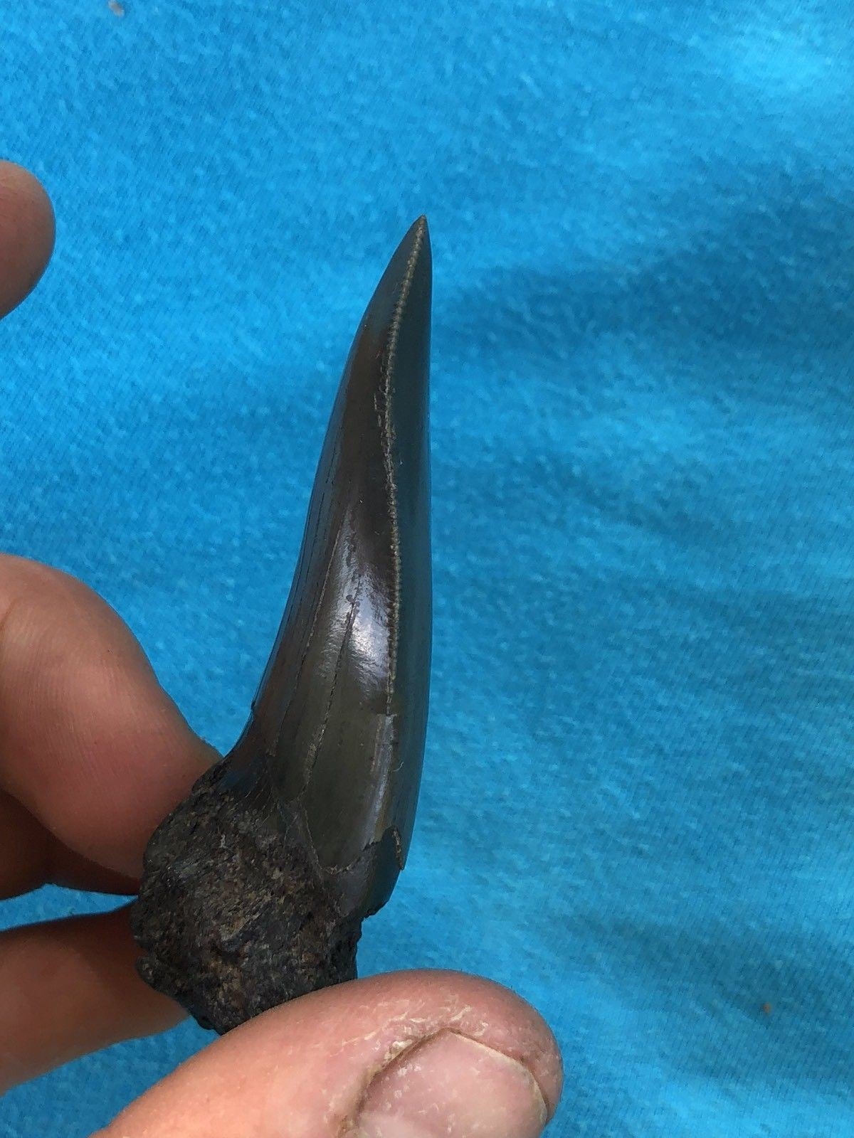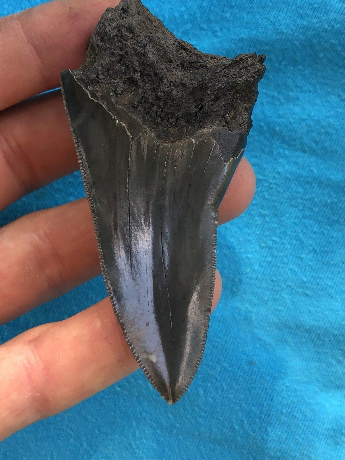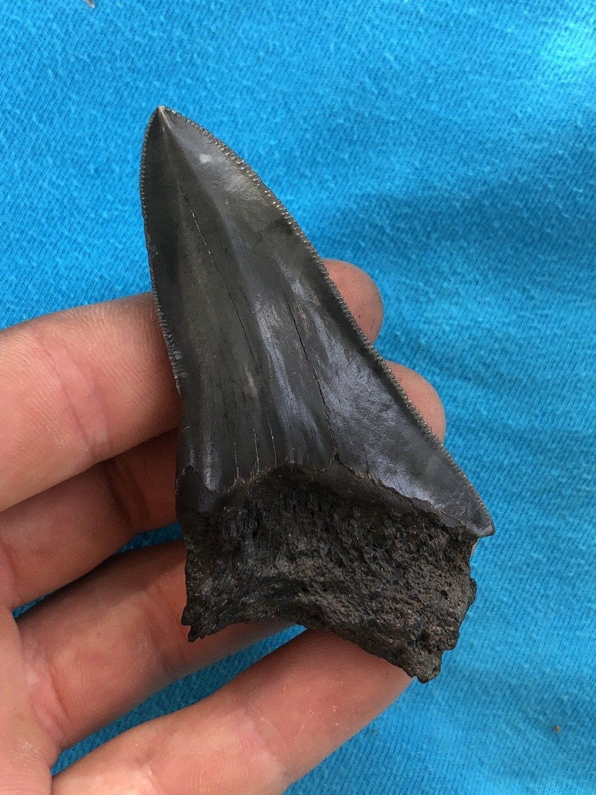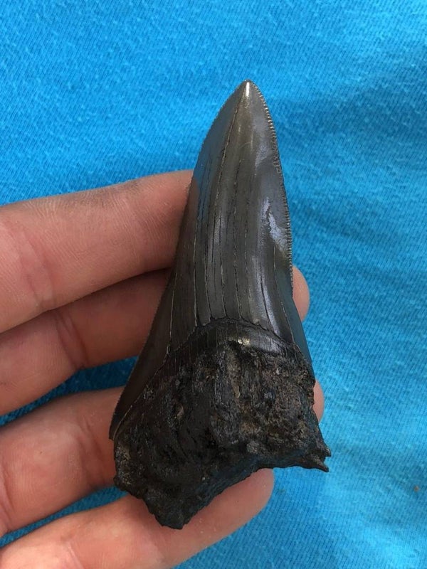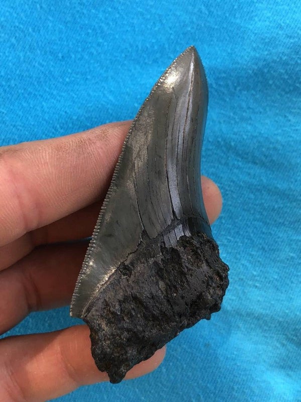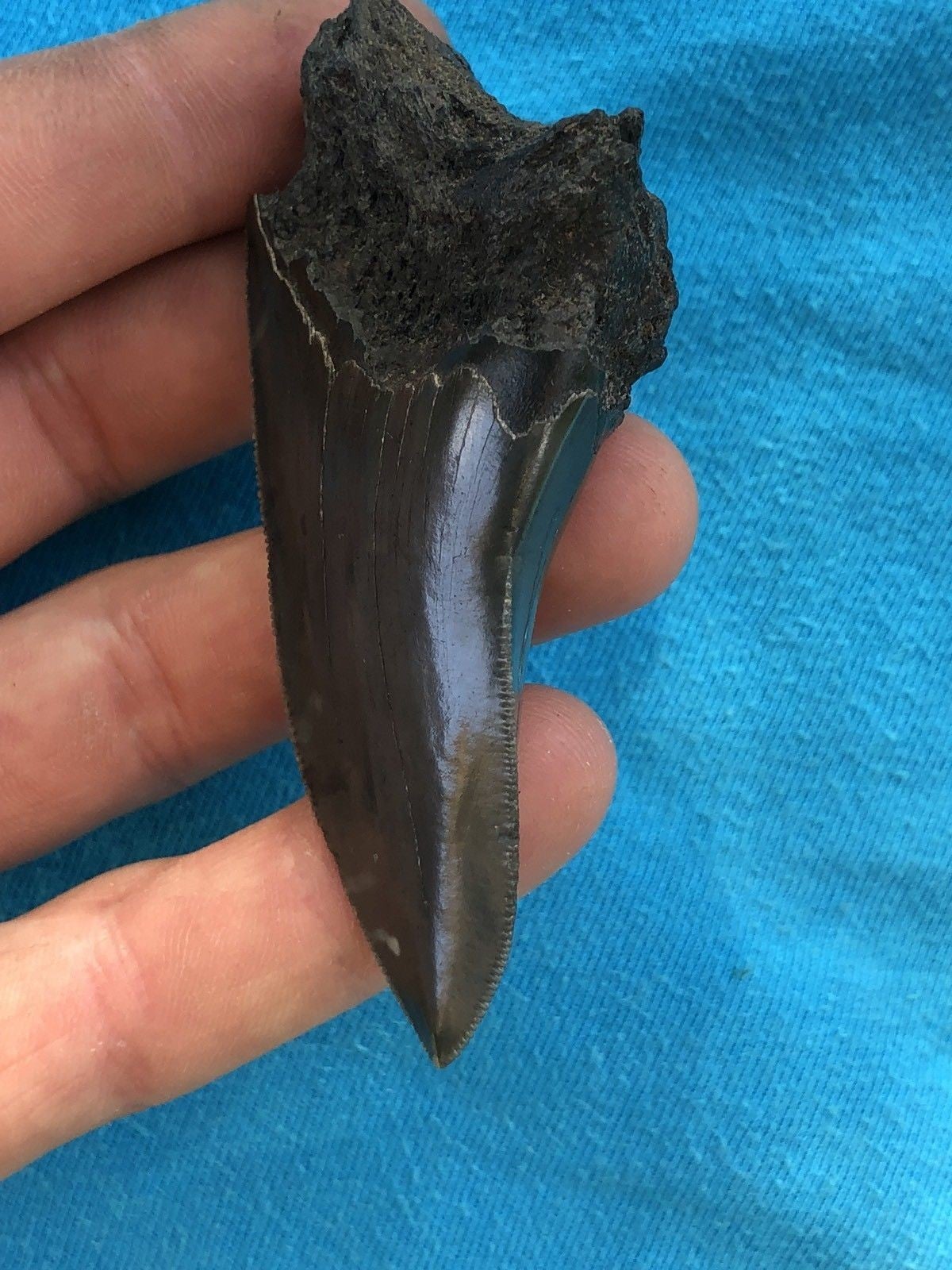 Zeldzame misvormde pathologische Megalodon. De tand is zeer gekarteld.