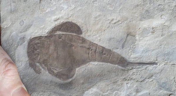 Een zeer goed bewaard groot exemplaar van deze fossiele zeeschorpioen uit een klassieke Amerikaanse fossielenplaats.