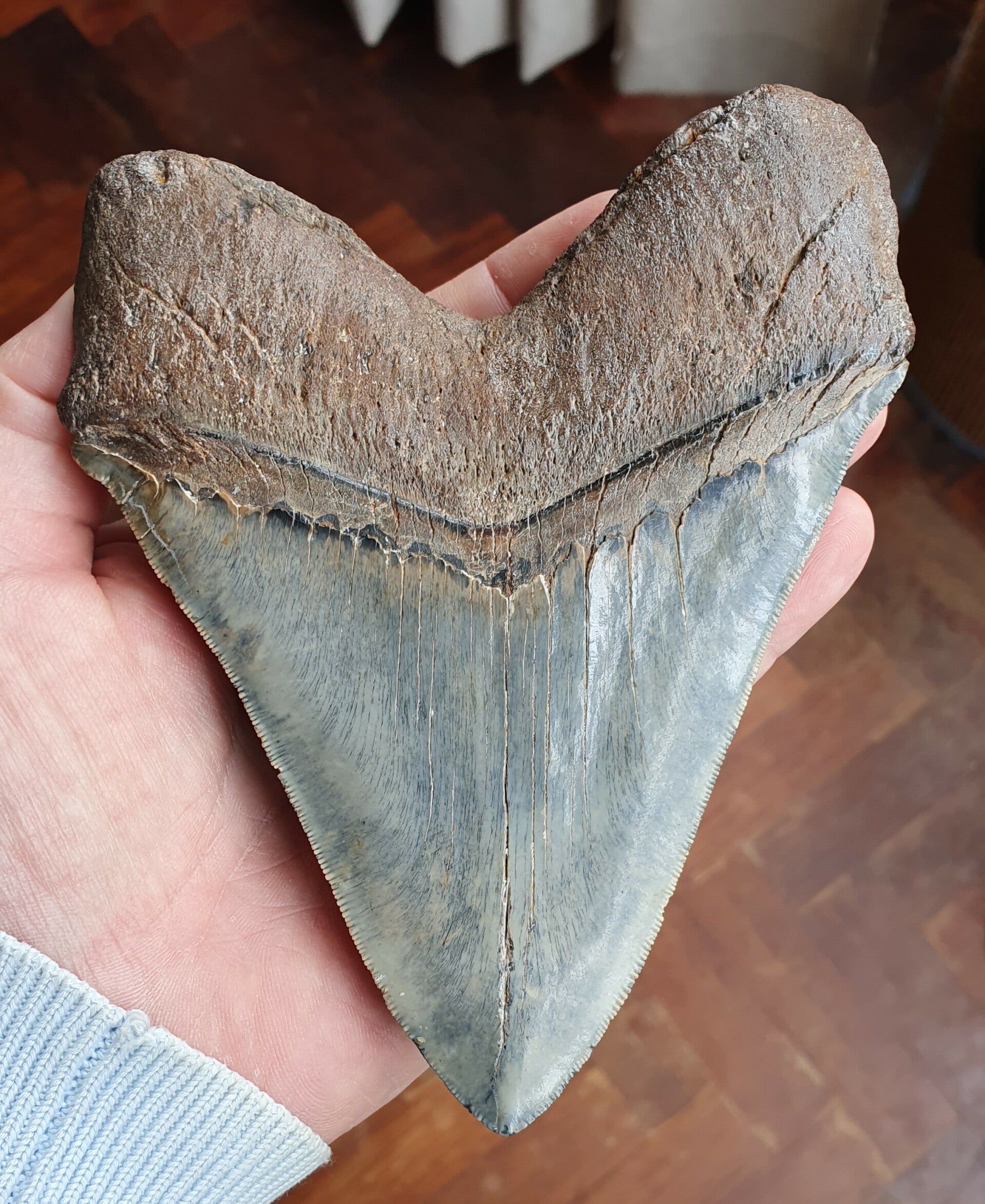 Mega grote en zware tand, in een zeldzame blauwe kleur.